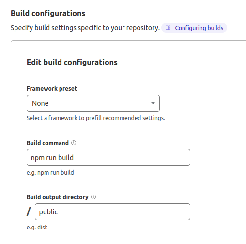 Cloudflare Pages has some presets but to run a custom build a specific one does not need to be selected. Instead, a custom npm script is used to first run hugo and then to run pagefind prior to deployment.