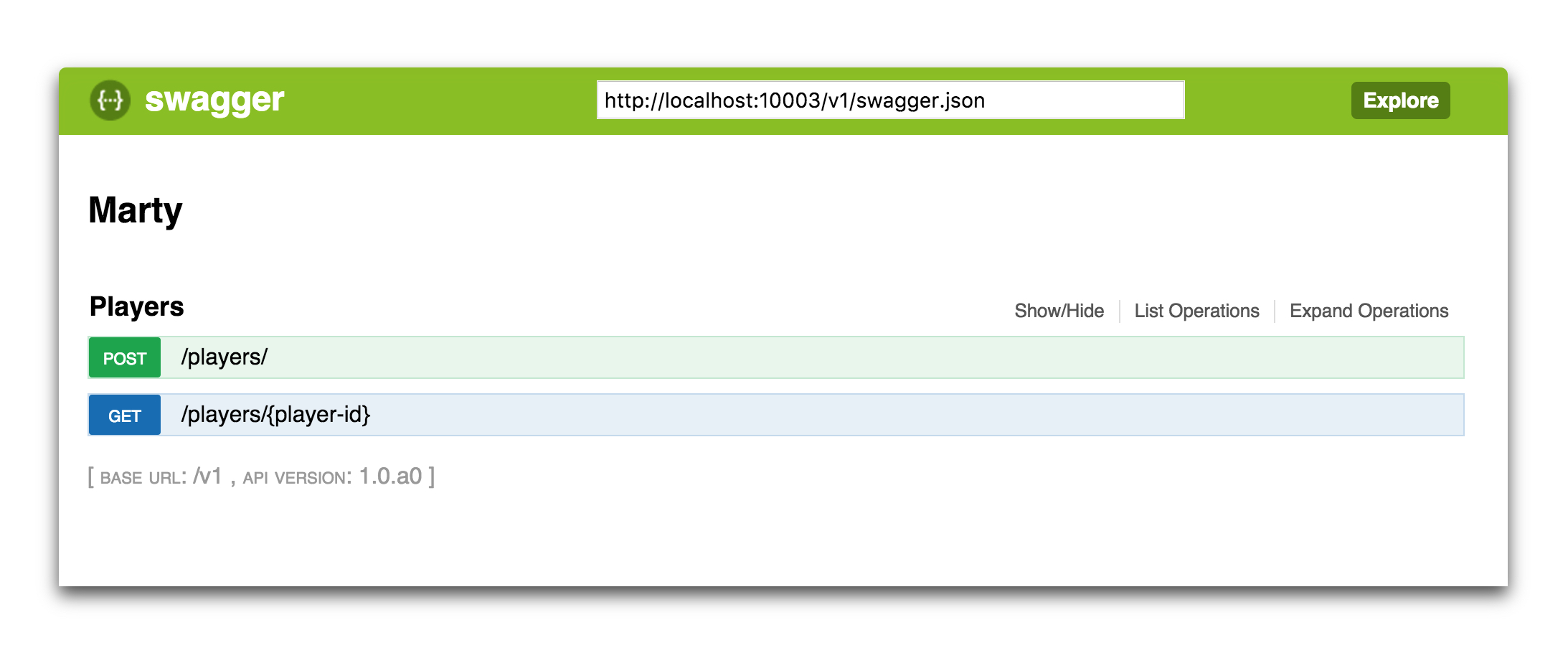 and using the UI I could see the two operations exposed by the API: