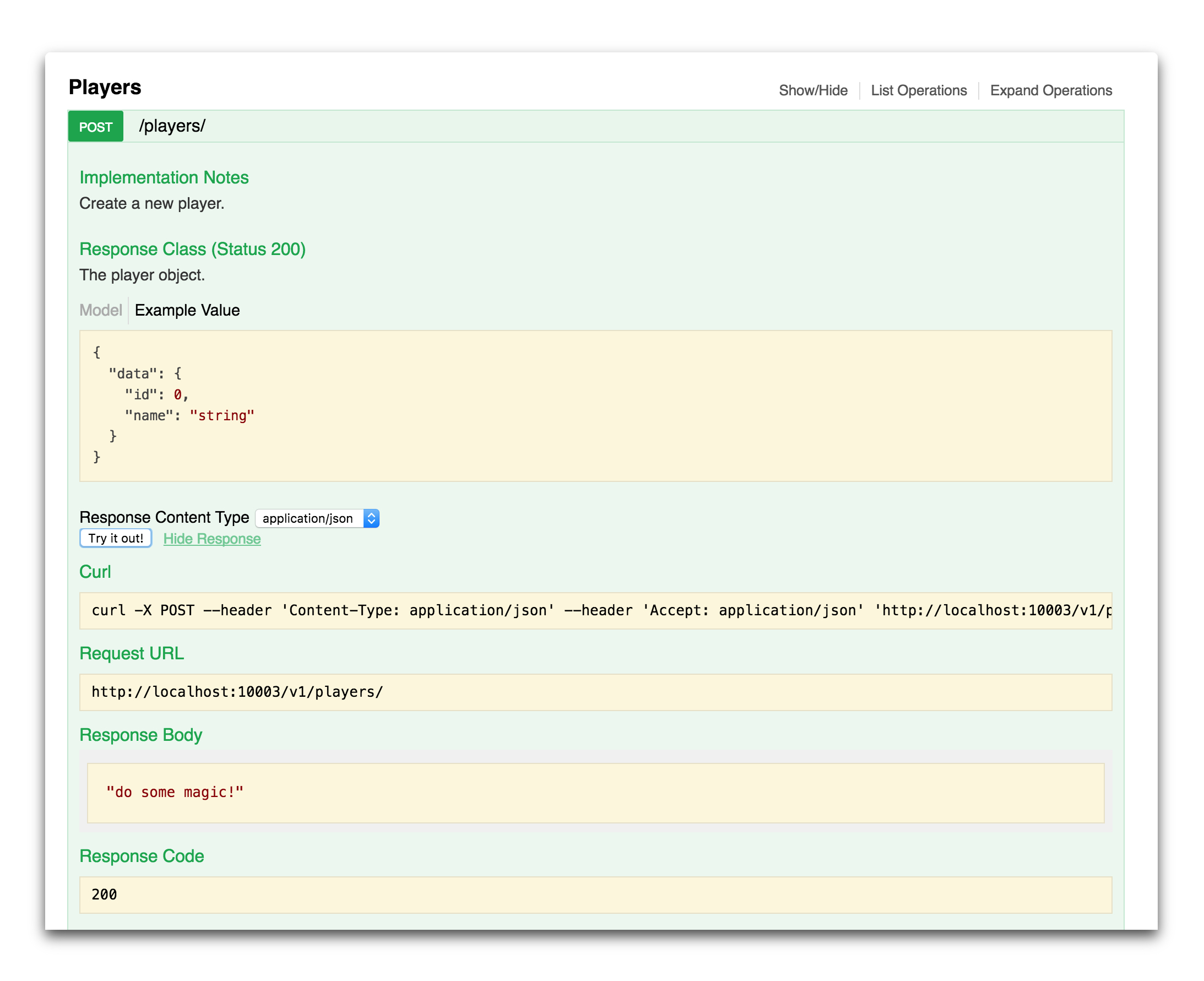 The controllers package contains per resource modules. For example, in our test spec we define a Player resource. This means a players_controller.py file is generated.
