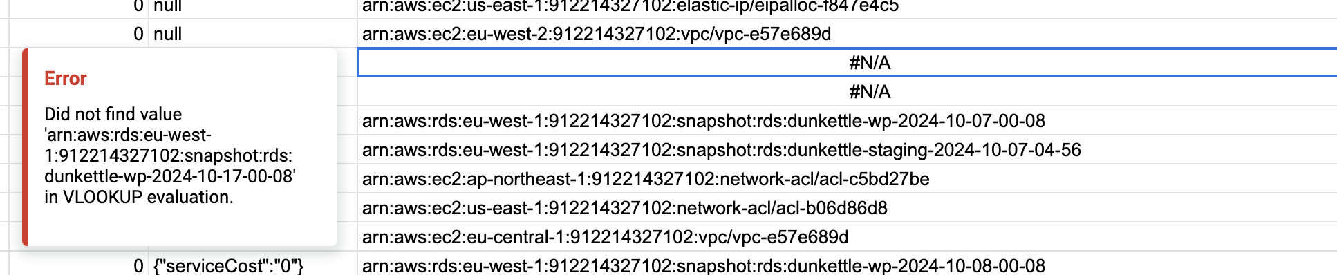 < arn:aws:rds:eu-west-1:912214327102:snapshot:rds:dunkettle-wp-2024-10-17-00-08,AWS,Tapadoo,rds:dunkettle-wp-2024-10-17-00-08,RDS Snapshot,eu-west-1,[]," 0","{""serviceCost"":""0""}"